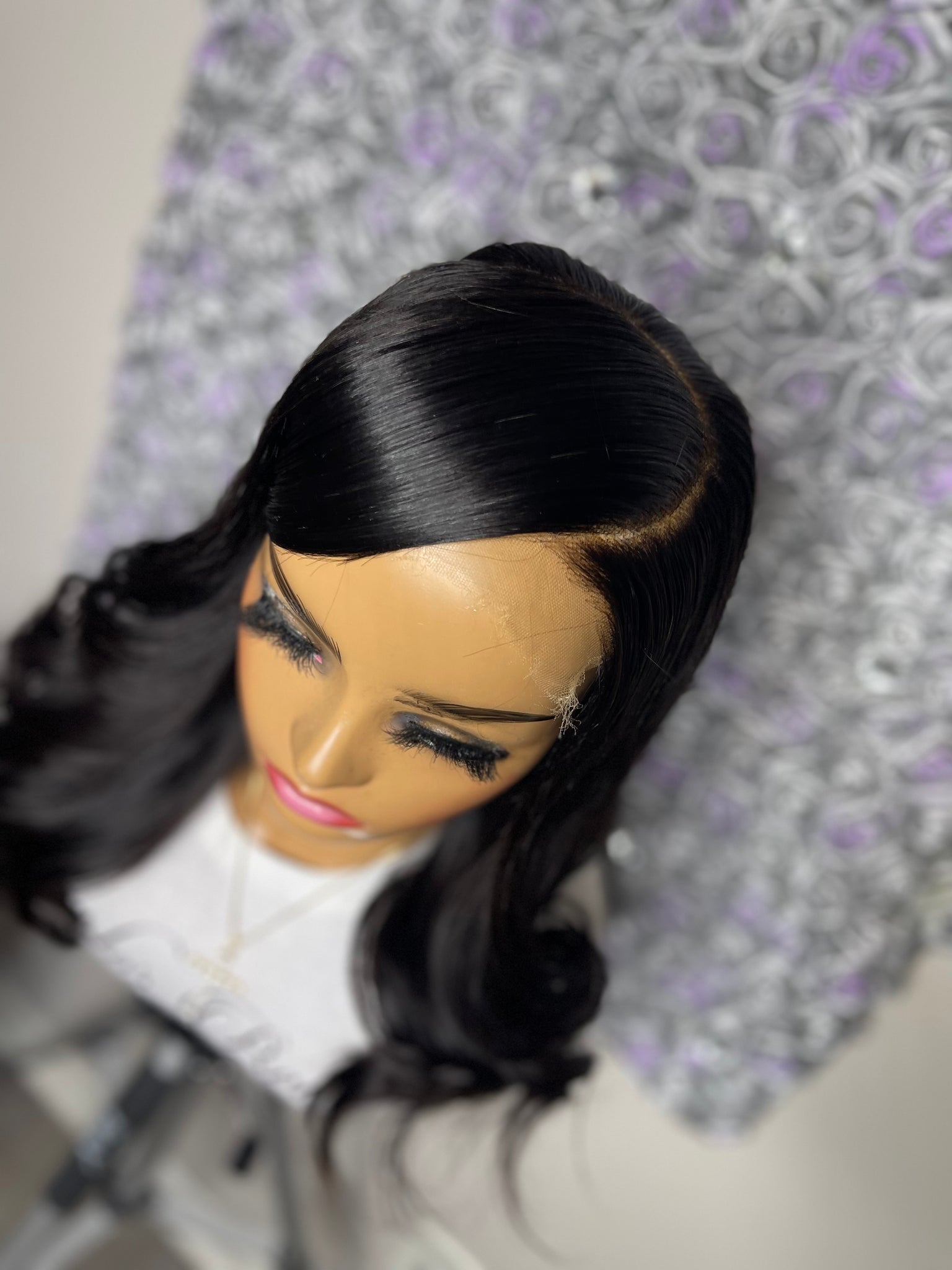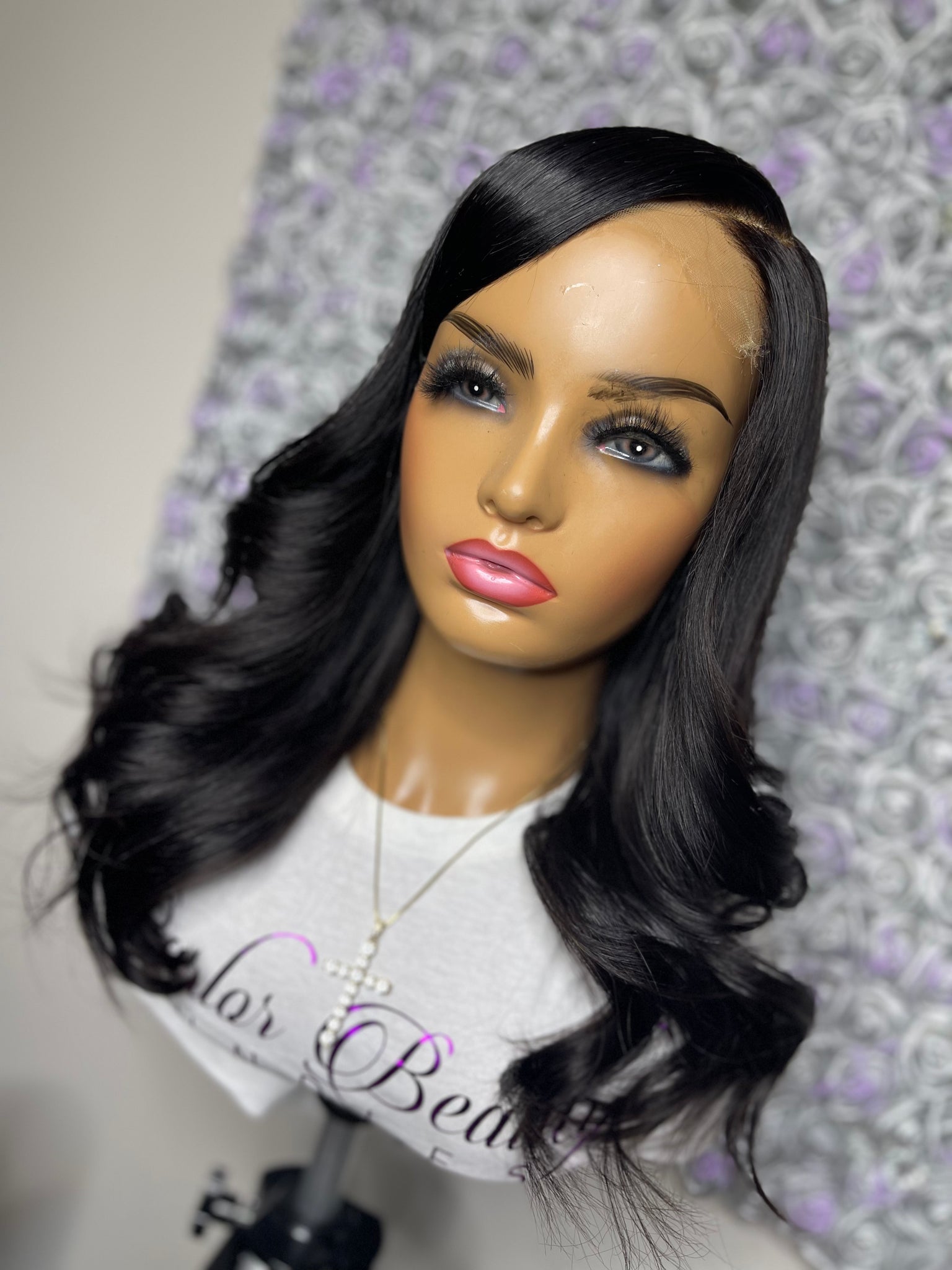 Description: this is a factory made unit created using a 5x5 HD lace closure, 16 INCH BODY WAVE BUNDLES to 200% density. This unit can be straightened, curled, crimped, colored up to a dark blonde.