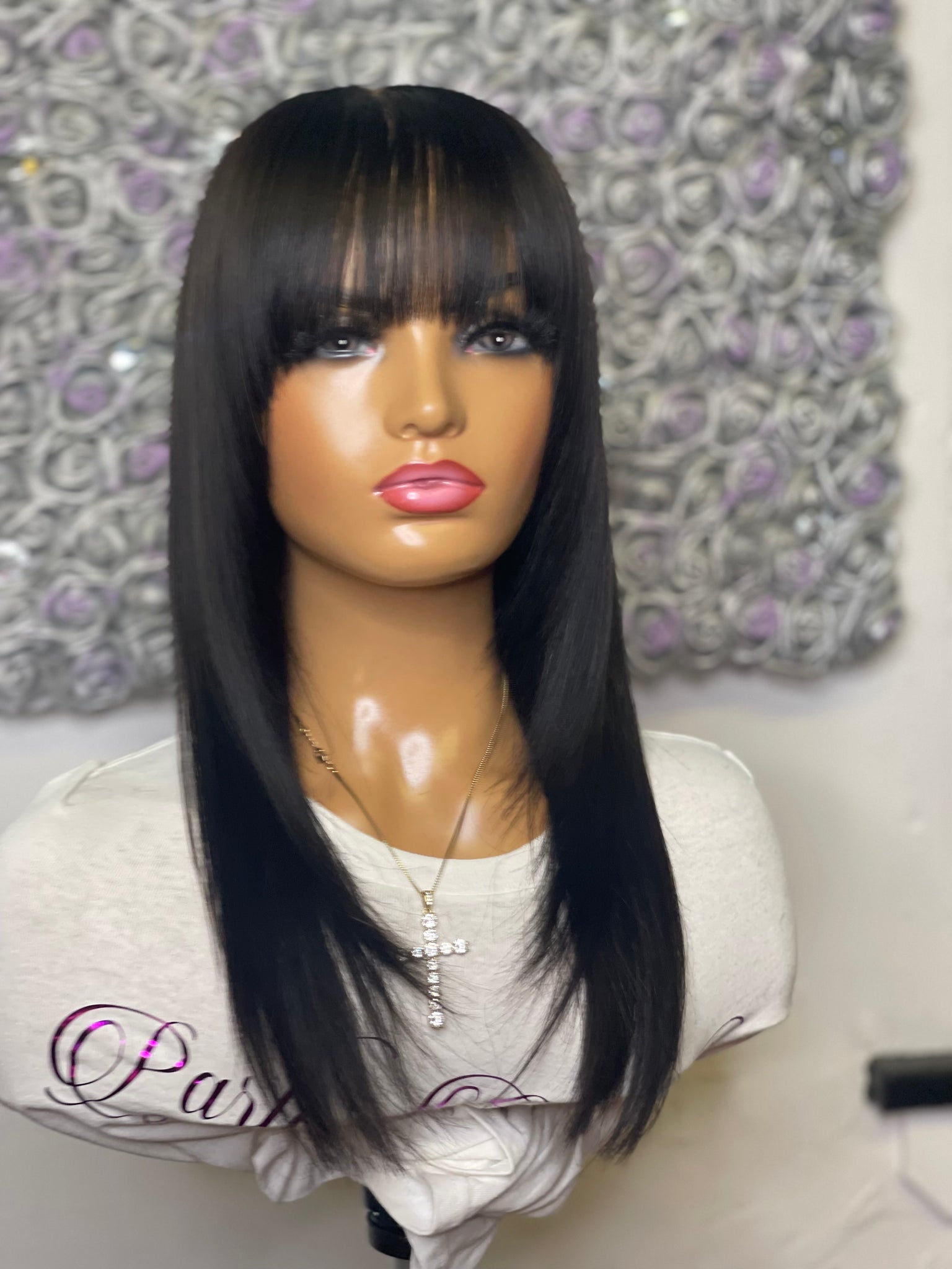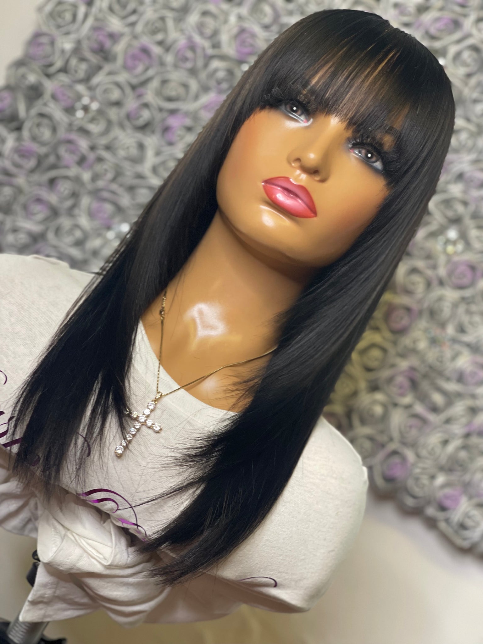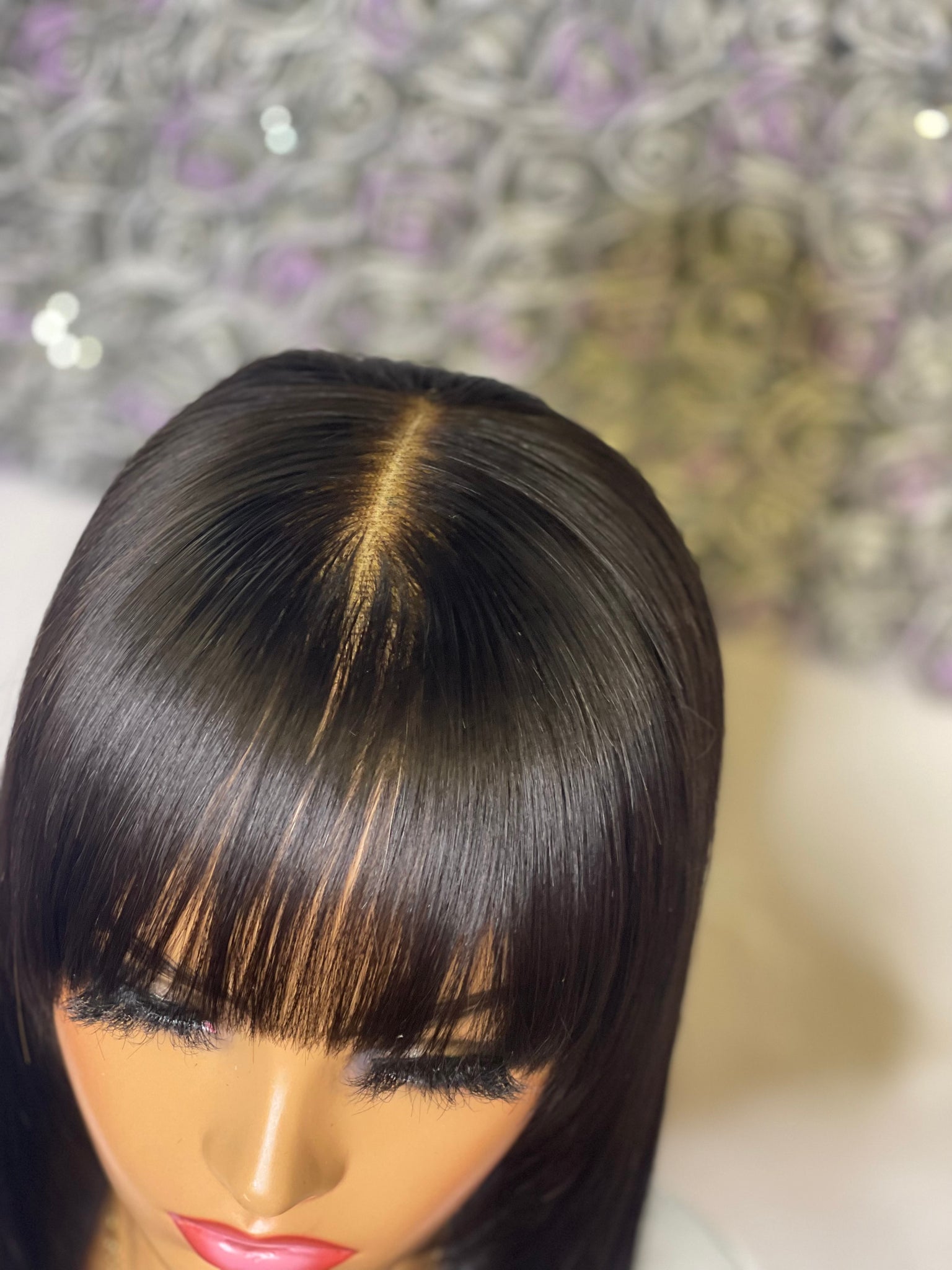 This 16” unit was custom created in our factory using straight bundles with a 4x4 HD LACE closure to 180% density. Unit was customized (knots bleached, hairline plucked and styled) and cut into a bang and layered hairstyle at our flagship location. Includes an elastic band and combs. This wig was created in a dome cap.